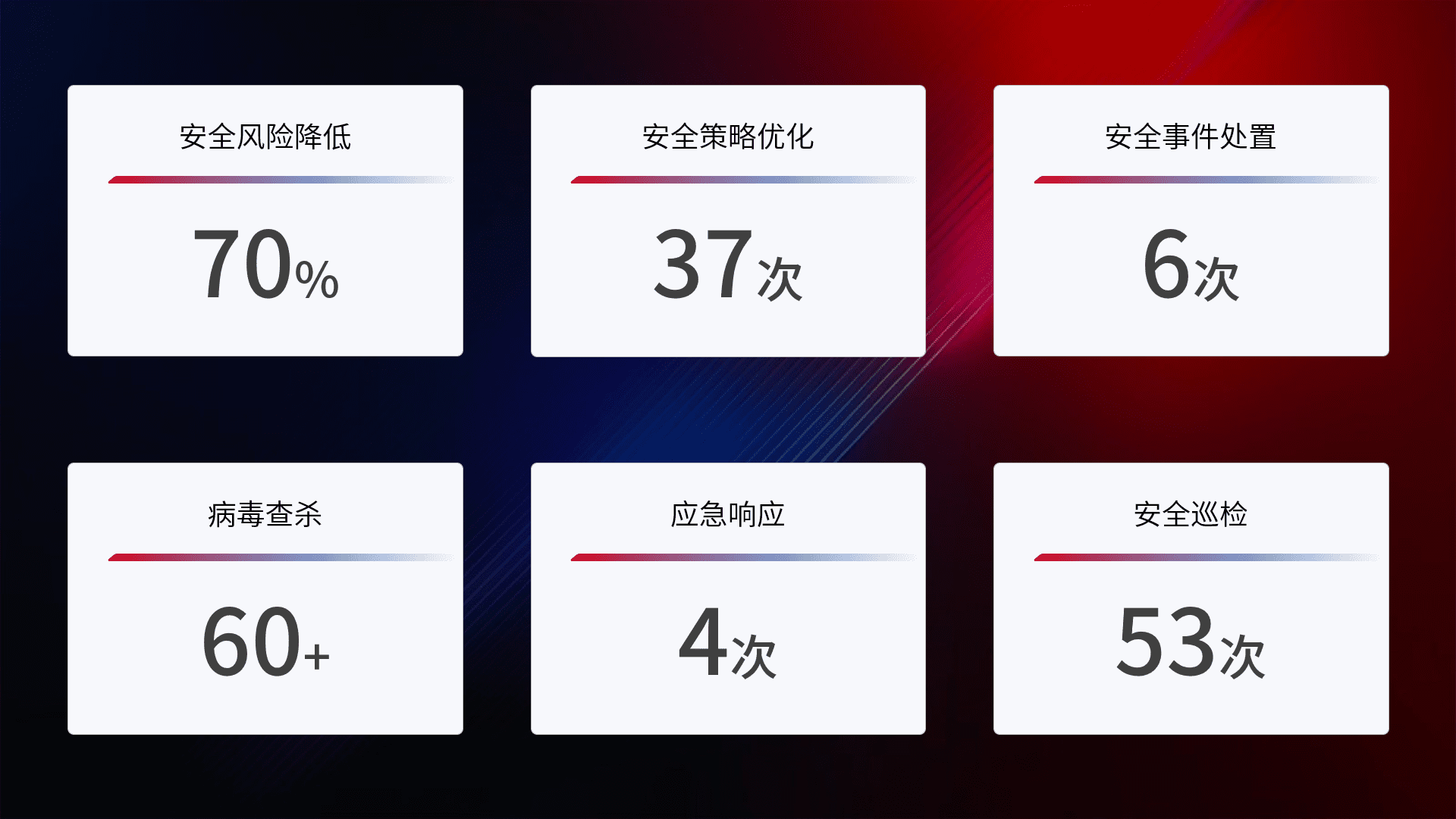 提供全面的安全事件报告体系,,,包括处置报告、、周报、、、、季度和年度总结,,,结合持续监控,,,,帮助客户深入了解网络安全状况。。。
